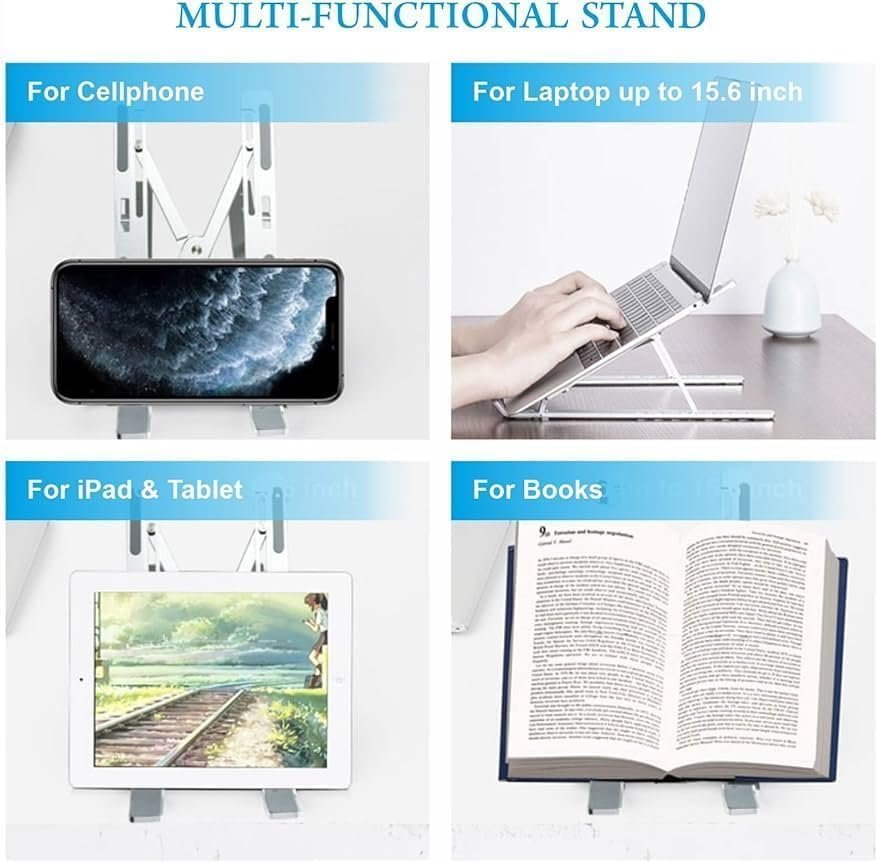 The Aluminum Laptop Stand is a versatile, portable ergonomic solution designed to improve posture and heat dissipation for laptops, tablets, and even books. Its lightweight, foldable frame makes it ideal for remote work, students, and office professionals.