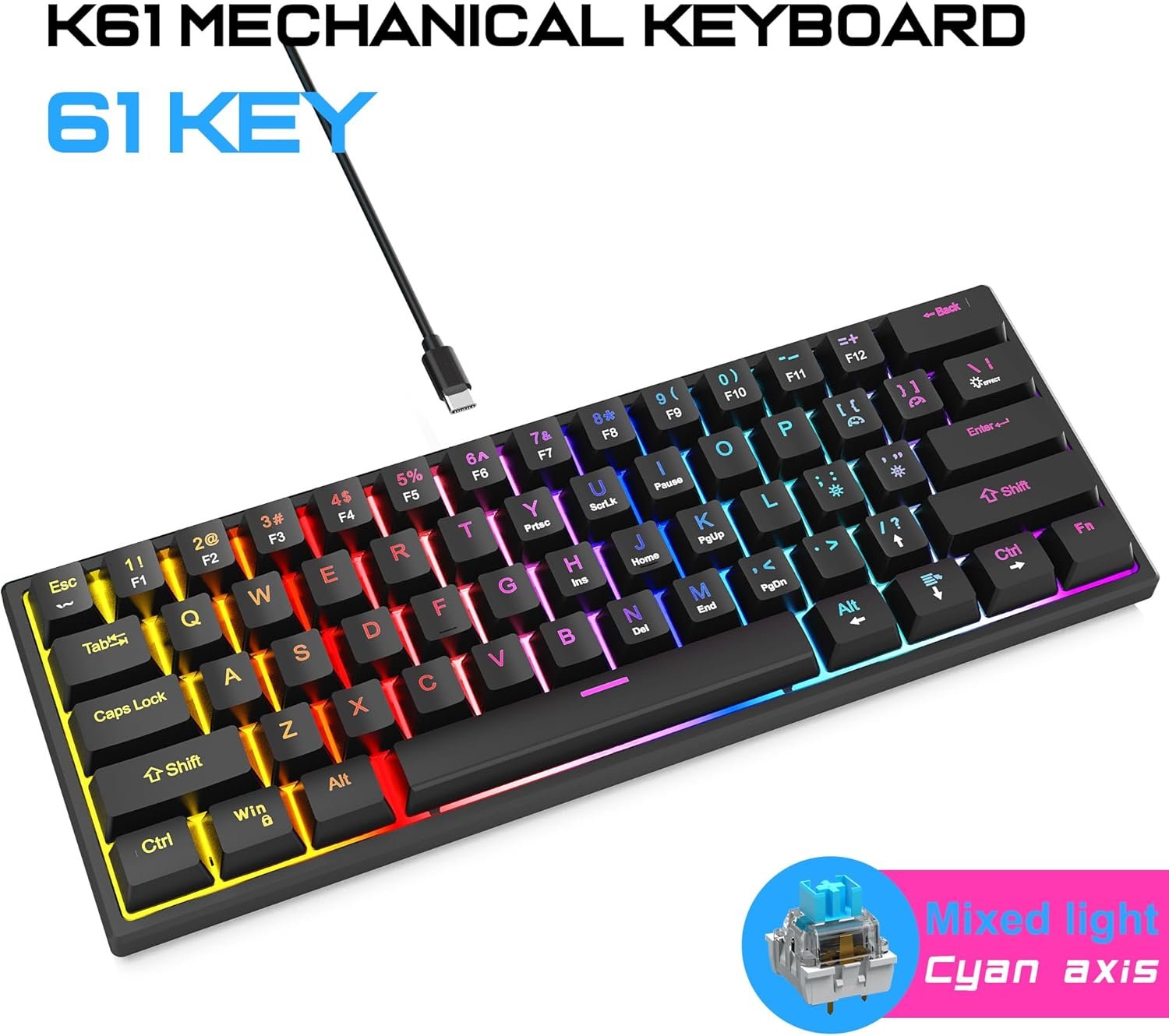 Switch Type: Mechanical Blue Switches (Tactile & Clicky).