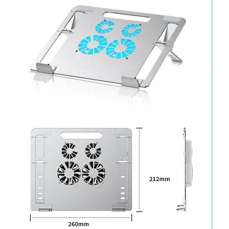 The Z23A Aluminum Laptop Tablet Stand is a premium cooling solution designed for heavy-duty use. It combines the structural stability of a Z-type aluminum stand with an active quadruple-fan cooling system.