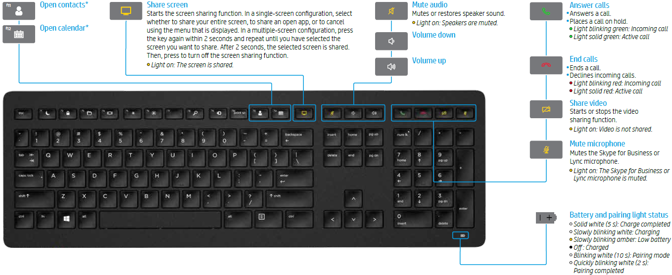 The HP Collaboration Slim USB Keyboard S001K is a high-performance, professional-grade peripheral designed for efficiency in office environments and virtual meetings. This model is specifically known for its slim profile and integrated collaboration shortcuts.