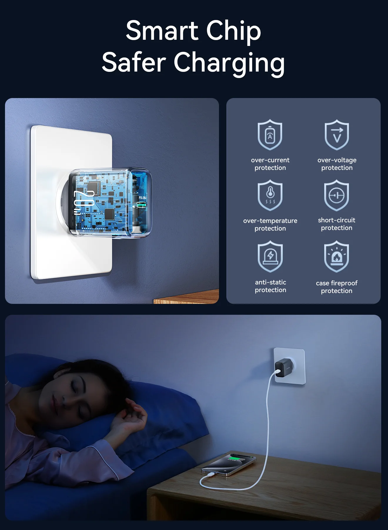 Smart Chip: Automatically identifies the connected device to deliver the optimal current while minimizing heat generation.
