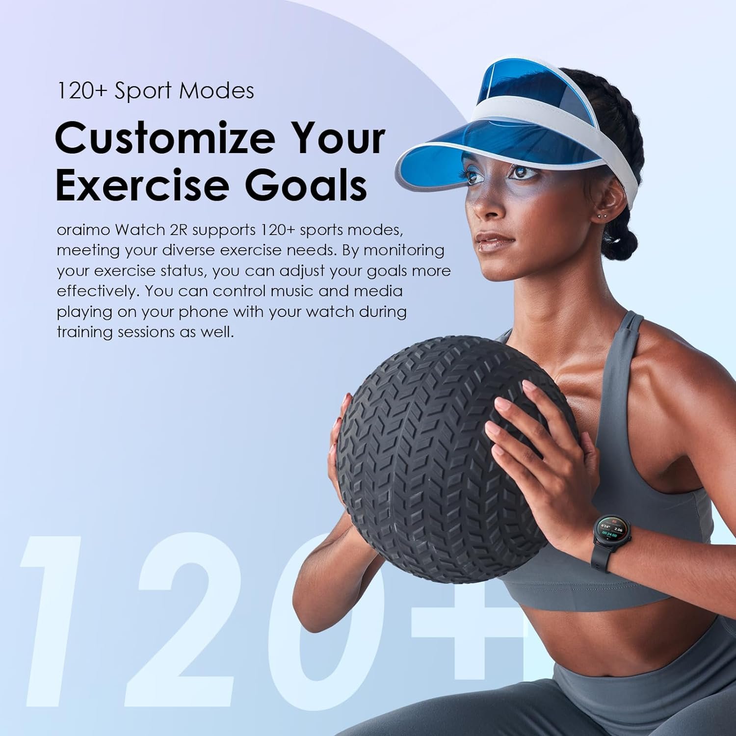 • 【120+ Sport Modes,Customize Your Exercise Goals】oraimo Watch 2R supports 120+ sports modes, meeting your diverse exercise needs. By monitoring your exercise status, you can adjust your goals more effectively. You can control music and media playing on your phone with your watch during training sessions as well.