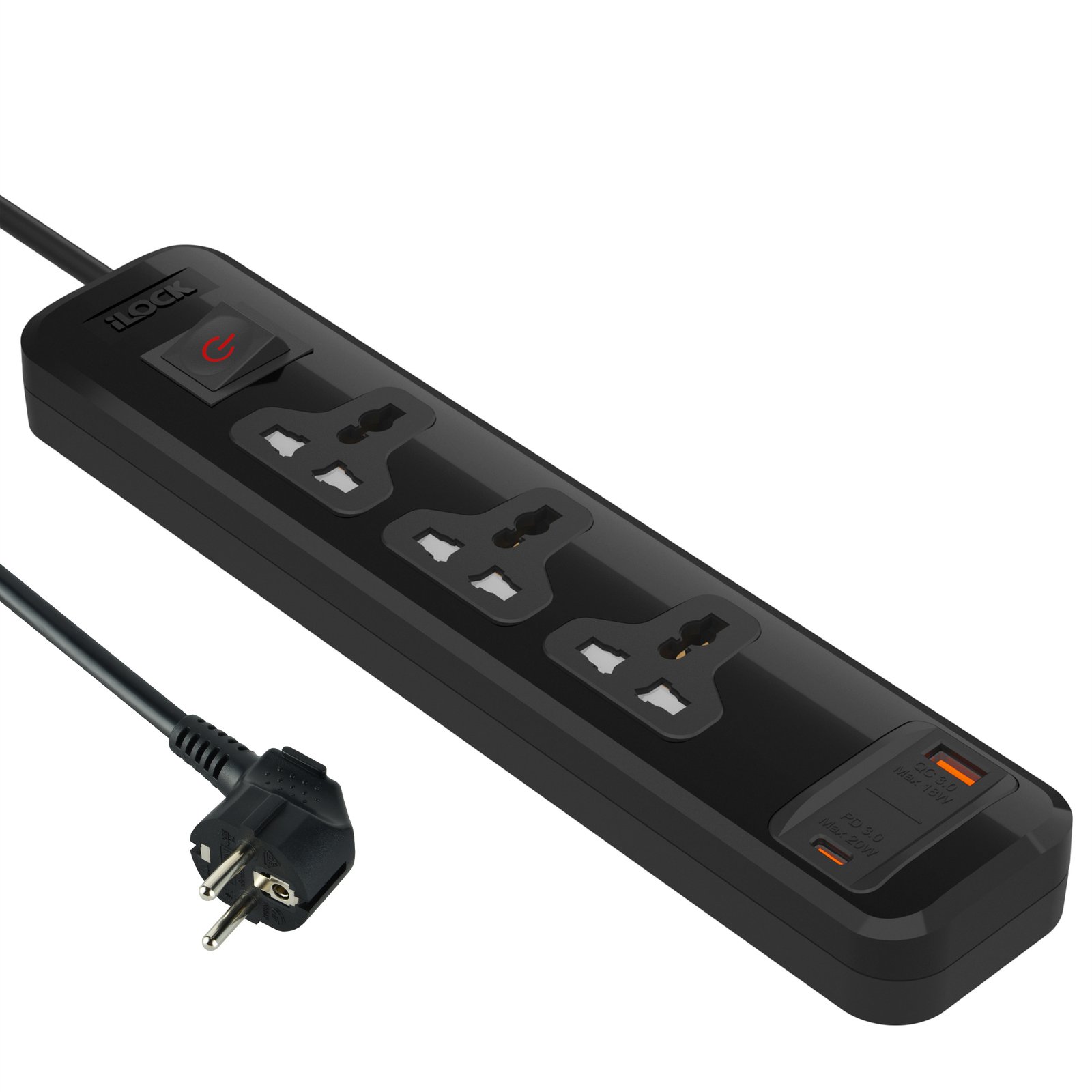 Power Strip iLock/ 3 points/ 1 Key/ 2 meters/ Type C + USB - 5109