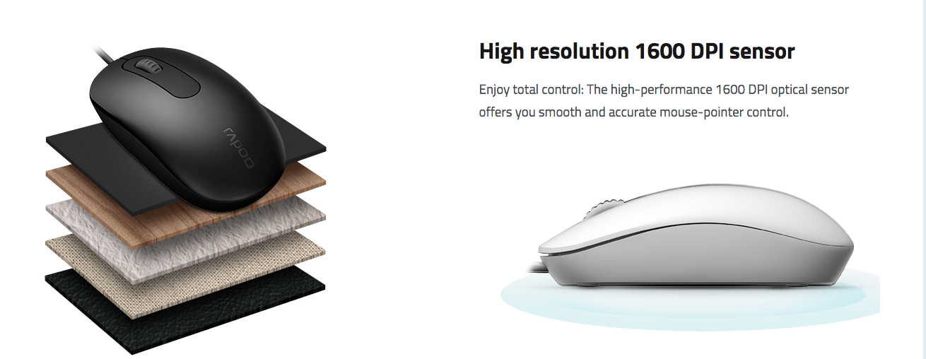 Rapoo N200 Wired USB Optical Mouse -1600DPI