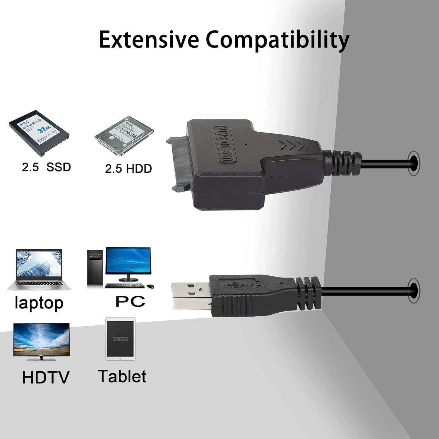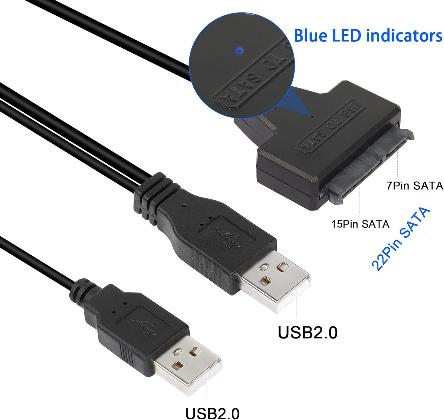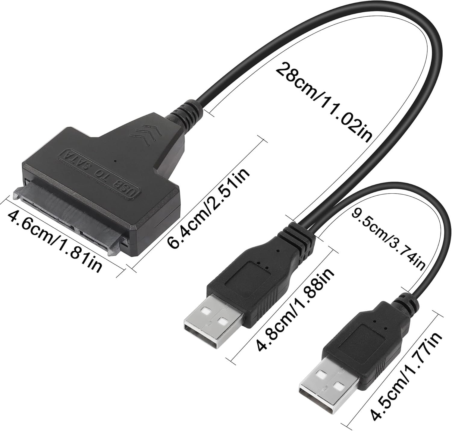 This USB 2.0 to SATA III Adapter Cable is a specialized Y-cable designed for 2.5-inch drives. Unlike standard single-head cables, this “Dual USB” version utilizes a secondary USB connector to provide supplementary power for high-performance mechanical hard drives.